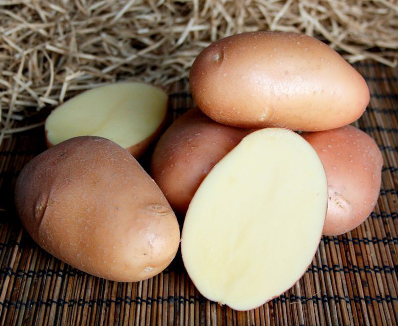 Ранний, высокопродуктивный столовый сорт с большим количеством красивых, белых клубней. Надёжный сорт столового картофеля с отличными вкусовыми качествами, высокой ранней урожайностью. Способен в короткий период времени достигать высоких урожаев, отзывчив на внесение удобрений. Имеет отличные товарные качества .Клубень овально-округлый, с мелкими глазками и гладкой кожурой. Окраска кожуры – светло-жёлтая, окраска мякоти – светло-жёлтая. Количество клубней в кусте: 23-32 (отдельные кусты дают до 50 клубней). Куст достаточно компактный. Масса товарного клубня: 150-230 г, товарность 81-89%. Содержание крахмала: 12,0-14,0%. Вкус хороший и отличный. Кулинарный тип – «АВ» (универсальный - для приготовления салатов, супов и гарниров).