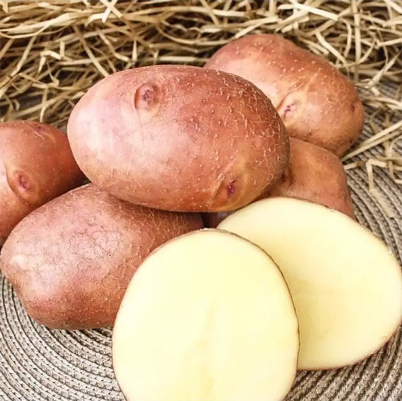 Среднеранний сорт столового назначения.Клубень правильной продолговато- овальной формы с мелкими поверхностными глазками.Кожура красная,гладная.Мякоть насыщенно-желтая,плотная, которая не темнеет при варке. Он слабо разваривается, имеет хороший вкус и подходит для жарки, пюре, чипсов и фри.Масса клубня 90-150гр.Содержание крахмала составляет 15–17%, а лежкость достигает 90%. Количество клубней на кусте до 20шт.Урожайность 350-550 ц/га.